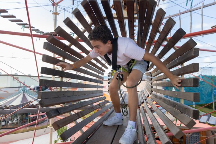 Funky Munky: circuito elevadoque incluye caminos de cuerdas, puentes colgantes y plataformas, donde superar desafíos en una aventura llena de adrenalina.